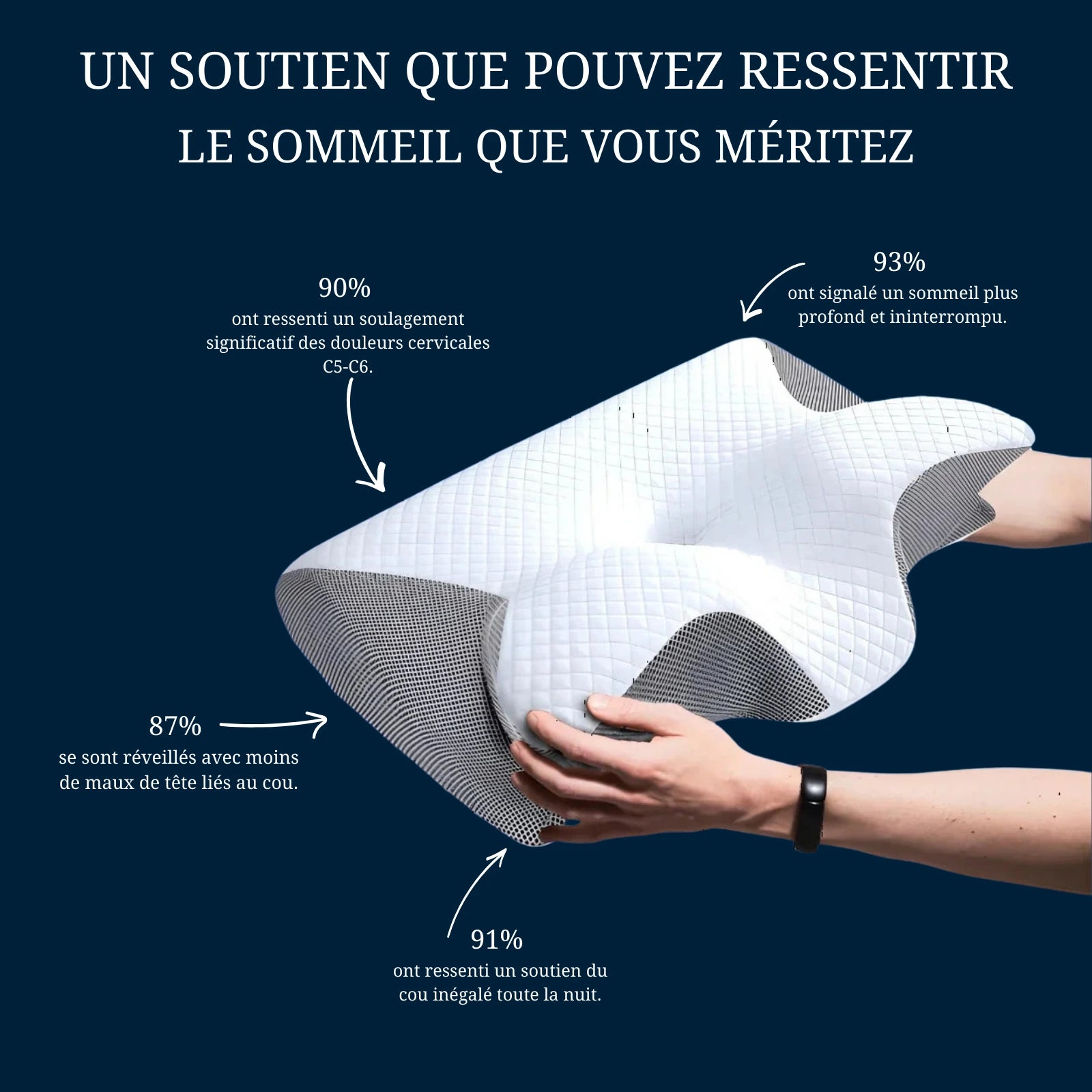Conçu avec précision et approuvé par des chiropracteurs de renom, notre oreiller primé s’adapte à l’alignement unique de votre colonne vertébrale, offrant un soutien exceptionnel et éliminant les douleurs cervicales dès la première nuit.